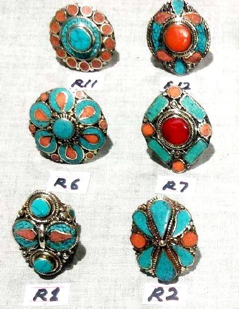 single or multi turquoise stone set:Traditional Tibetan design ring