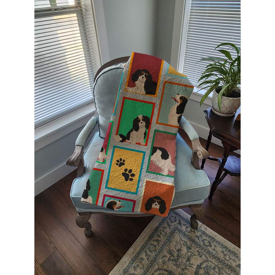 Tricolor Cavalier Spaniel Quilted Throw Blanket 50x60 Artwork Pattern Soft Lightweight Bed Couch Sofa Pet Blanket & Throw