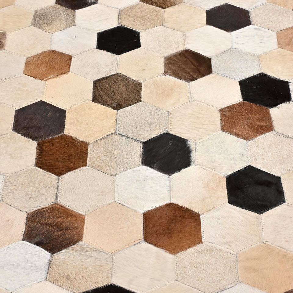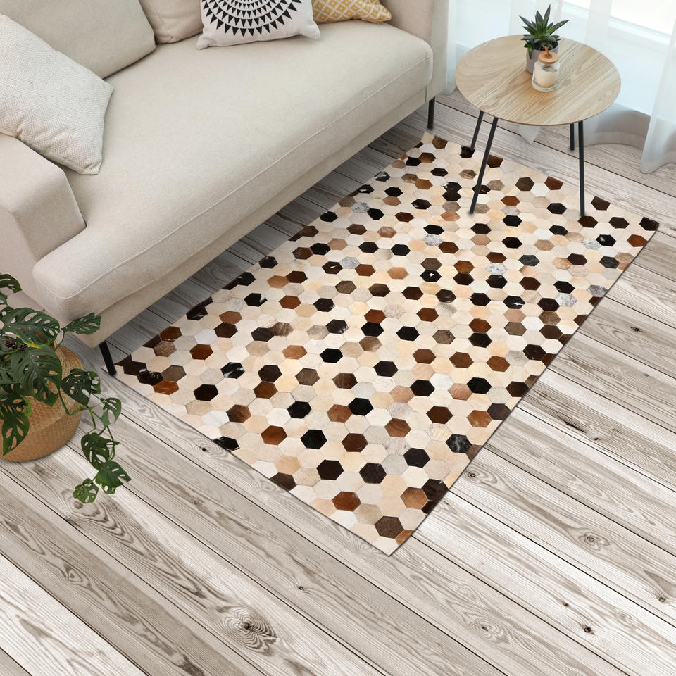 Natural Cow Skin Patchwork Rug Handmade Leather Carpet for Living Room