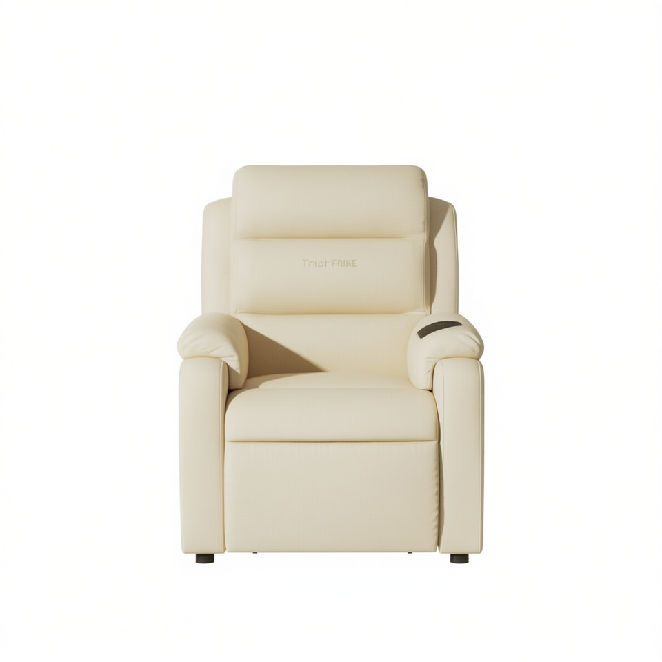 Trigt Frike Cream Synthetic Leather Massage Recliner Chair Manual Operation Contemporary Design Tight Back Padded Arms