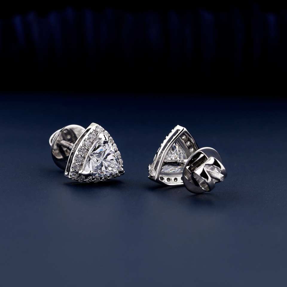 Triiliant Cut Diamond Halo Diamonds Earrings Natural Diamond Halo Screw Back Stud Earring 14k Real Gold Handmade Designer Studs