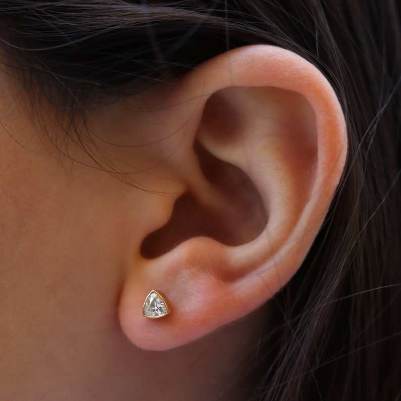 Trillion Shape Moissanite Gemstone Earrings 18K Gold Plated 925 Sterling Silver Everyday Push Back Studs Excellent Quality