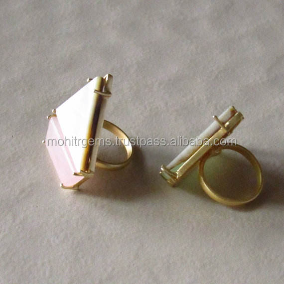Handmade Adjustable Trillion Shape Mother of Pearl Ring Unique Stylish Long Colored Stone Pearl Rings