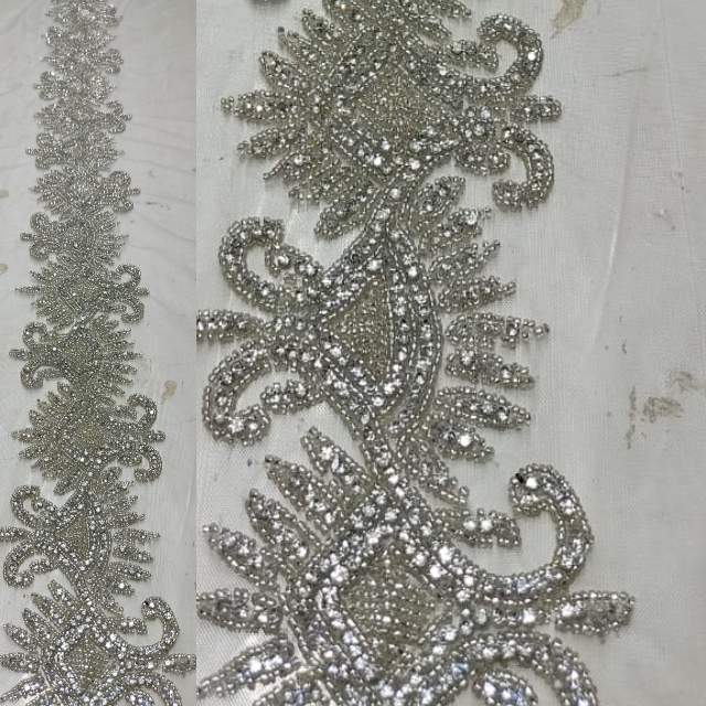 Trim Beaded High Quality Wholesale Embroidery Gold Sequin Trim Beaded Net Lace Flower Fabric for Bridal