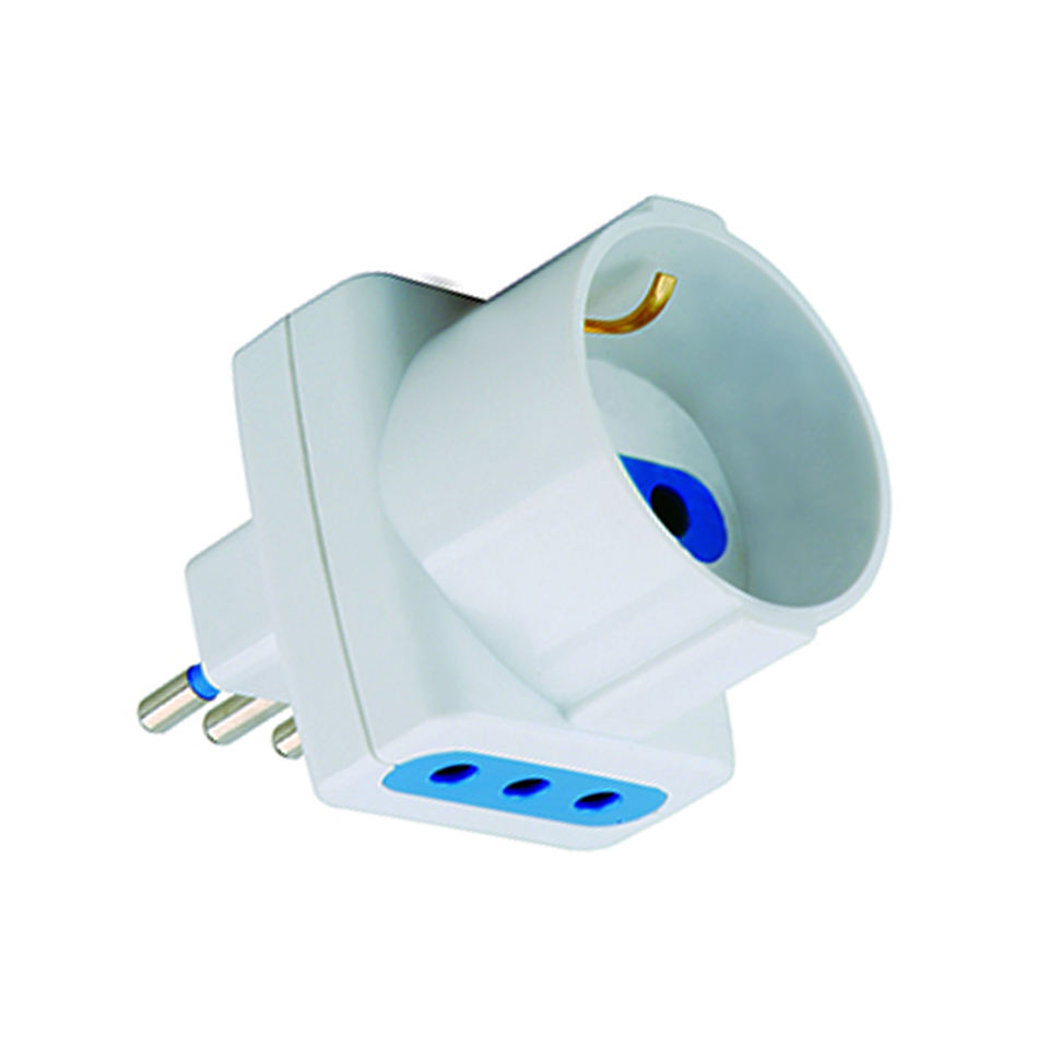 Triple 3pos 10A Schuko PC Material Power Adapter with Polybag Packaging