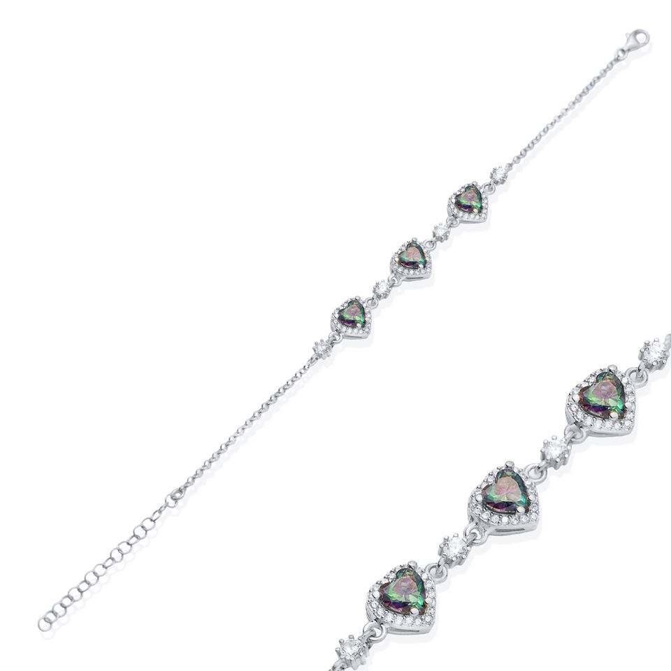 Triple Heart Design Mystic Topaz CZ Stone Shape Turkish Handmade Jewelry 925 Silver Sterling Jewelry