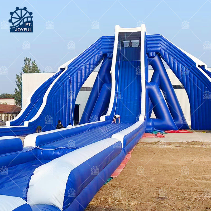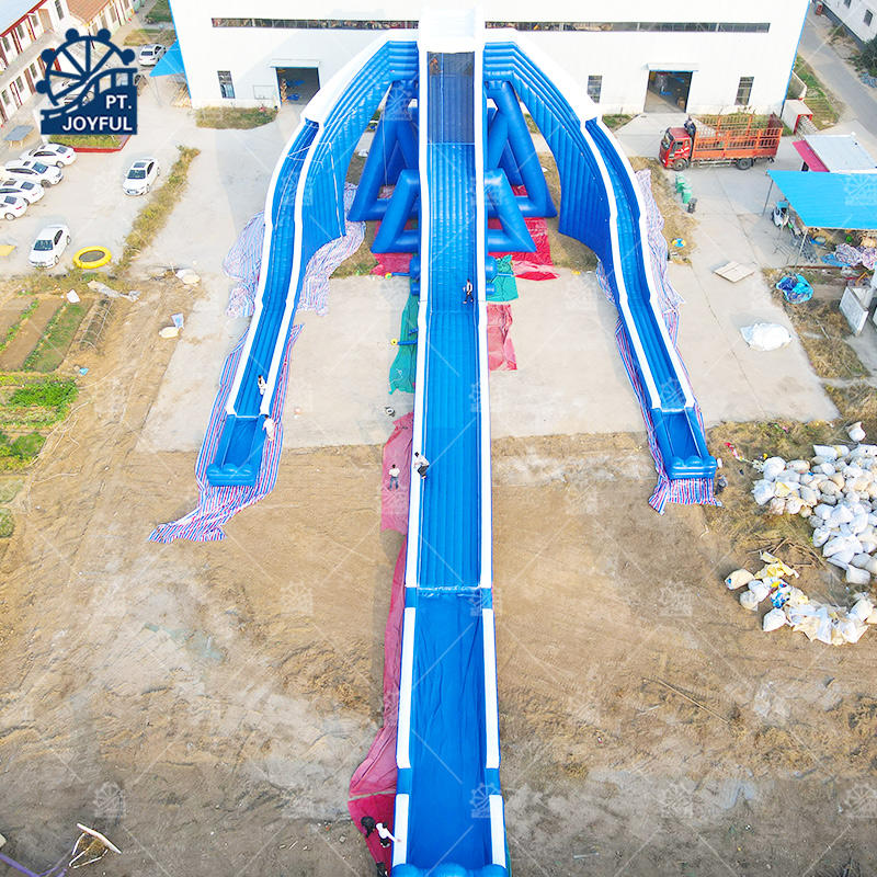 Triple Lane Inflatable Water Slide with 3 Splash Pools Commercial 50m Inflatable Water Park Slide Giant