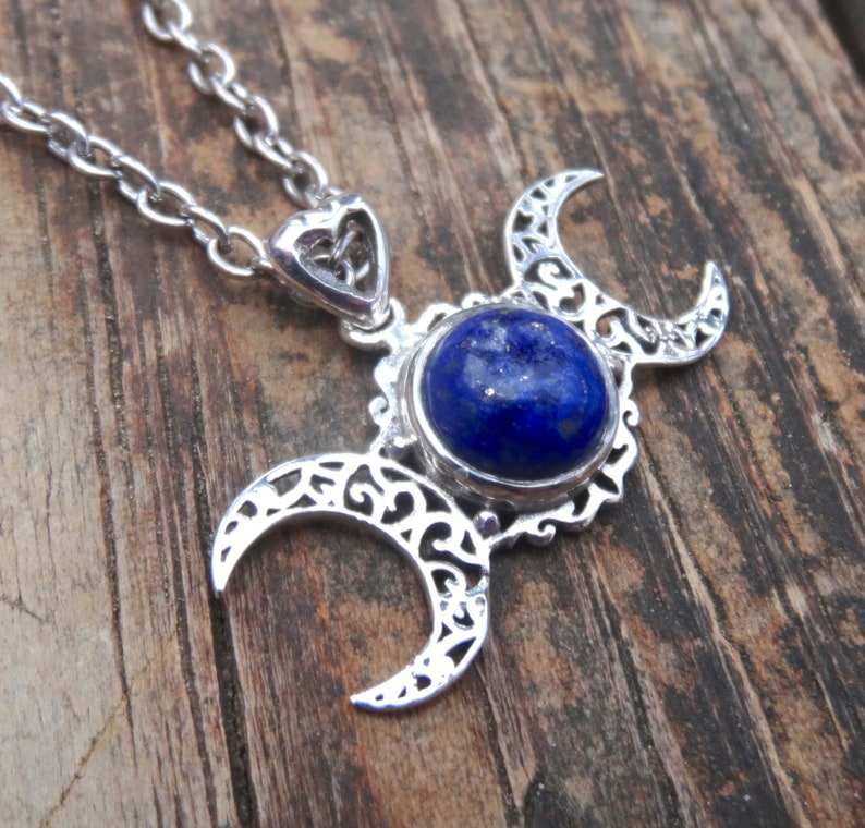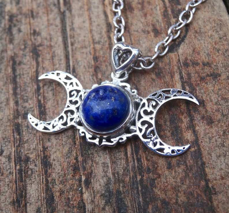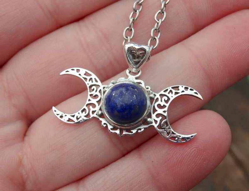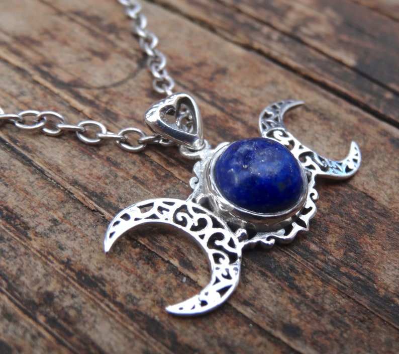 Triple Moon Lapis Necklace Sterling Silver Natural Stone Blue Lapis Lazuli Pendant 925 Crescent Moon Celestial Necklace