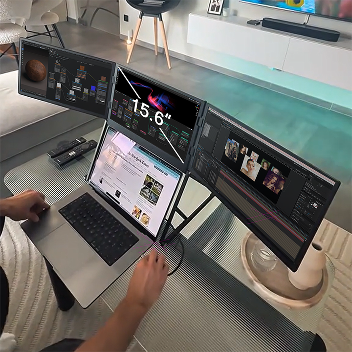 Triple Screen Monitor TriCreate 15.6 1080P FHD USB-Cmonitor Portatil IPS Travel Monitor for Laptop for Business Gaming Monitors