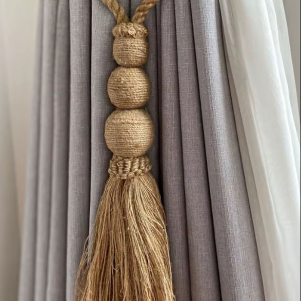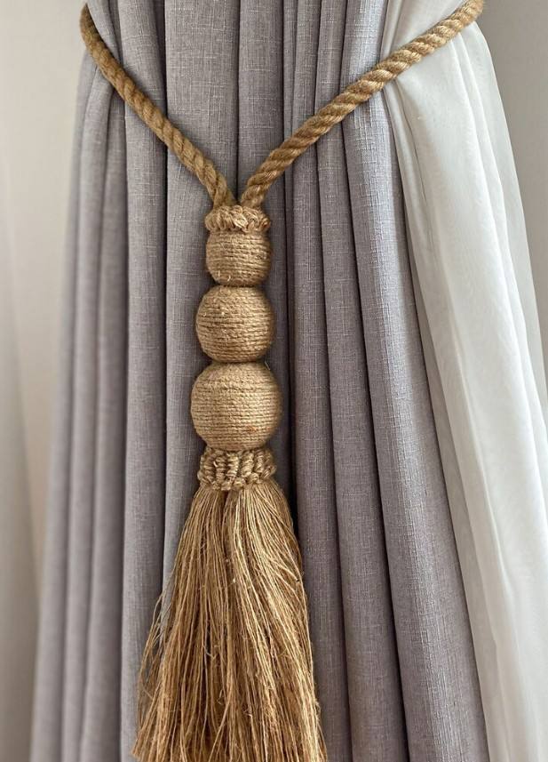 Triple Sphere Jute Curtain Tie Back, Natural Jute Tie Back, Bohemian Tie Back, Coastal Tie Back
