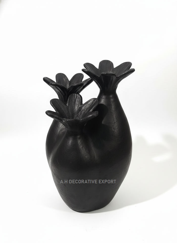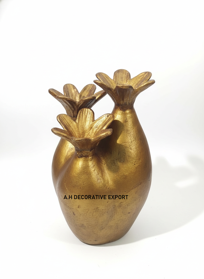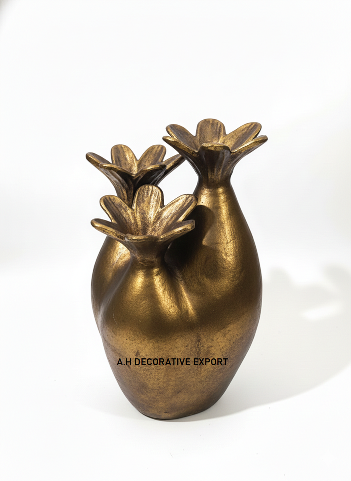 Triple Spout Pomegranate Vase Aluminium | Modern Design Vintage Metallic Flower Pot for Living Room Decor Tabletop Wedding