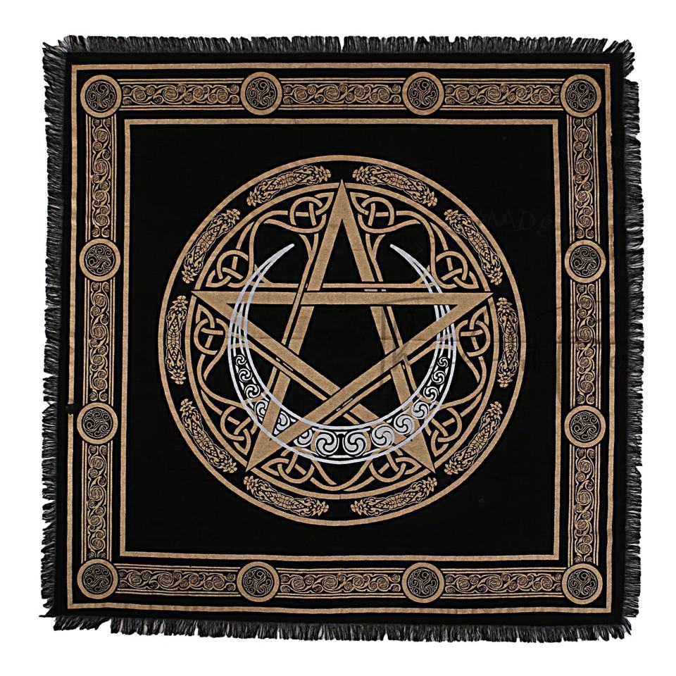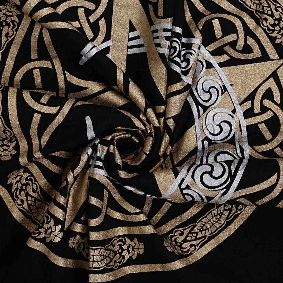 Triquetra Pentacle Gold Silver Astrology Altar Cloth for Temple 100 % Cotton Printed Black & Silver Worship Puja Room Aasan