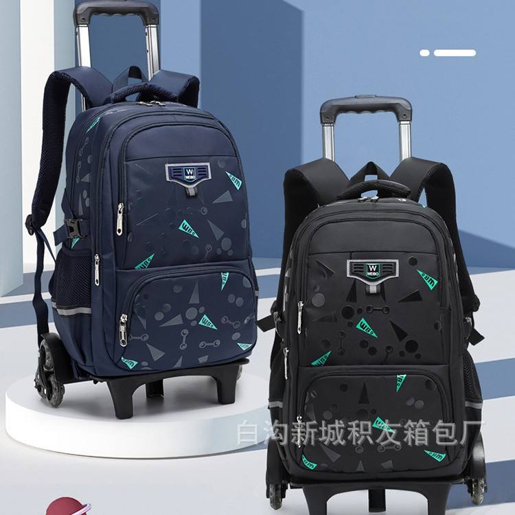 Trolley Backpack For Boys 18 In Geometric Pattern School Education Lightweight Portable With Retractable Handle