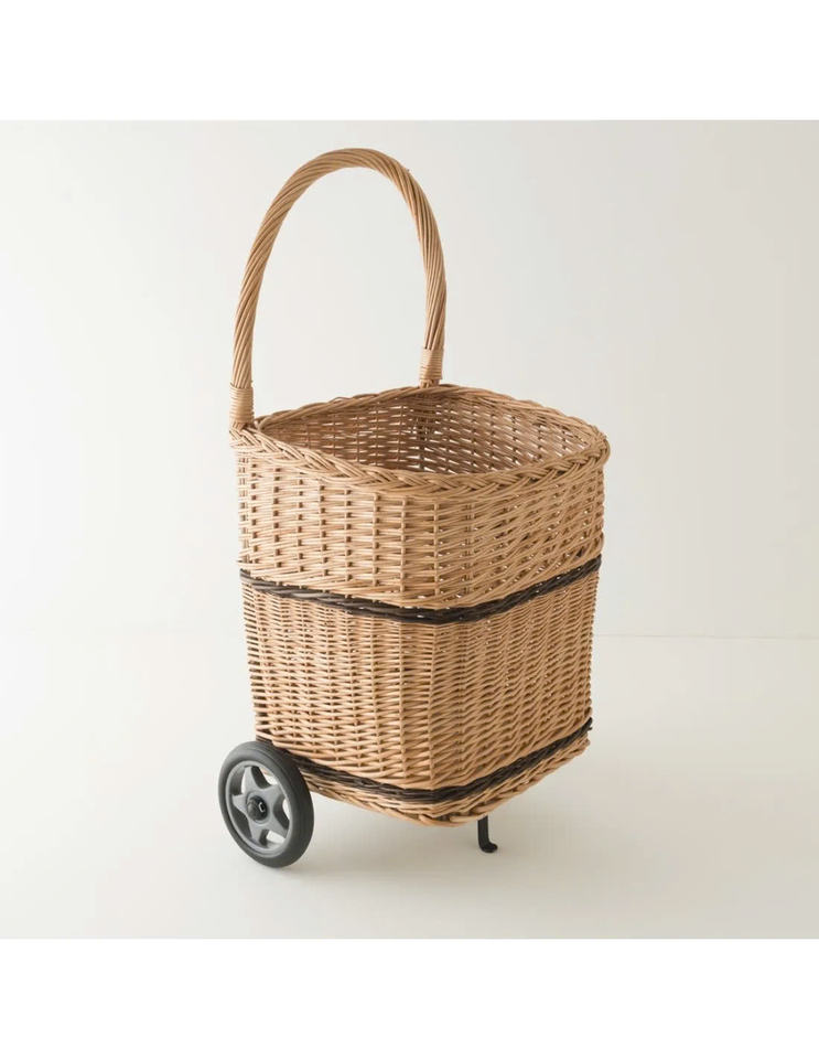Trolley Basket Shopping/Log Holder, Willow, Natural Color, Handicraft In Vietnam, Nhat Minh Ready For Wholesale