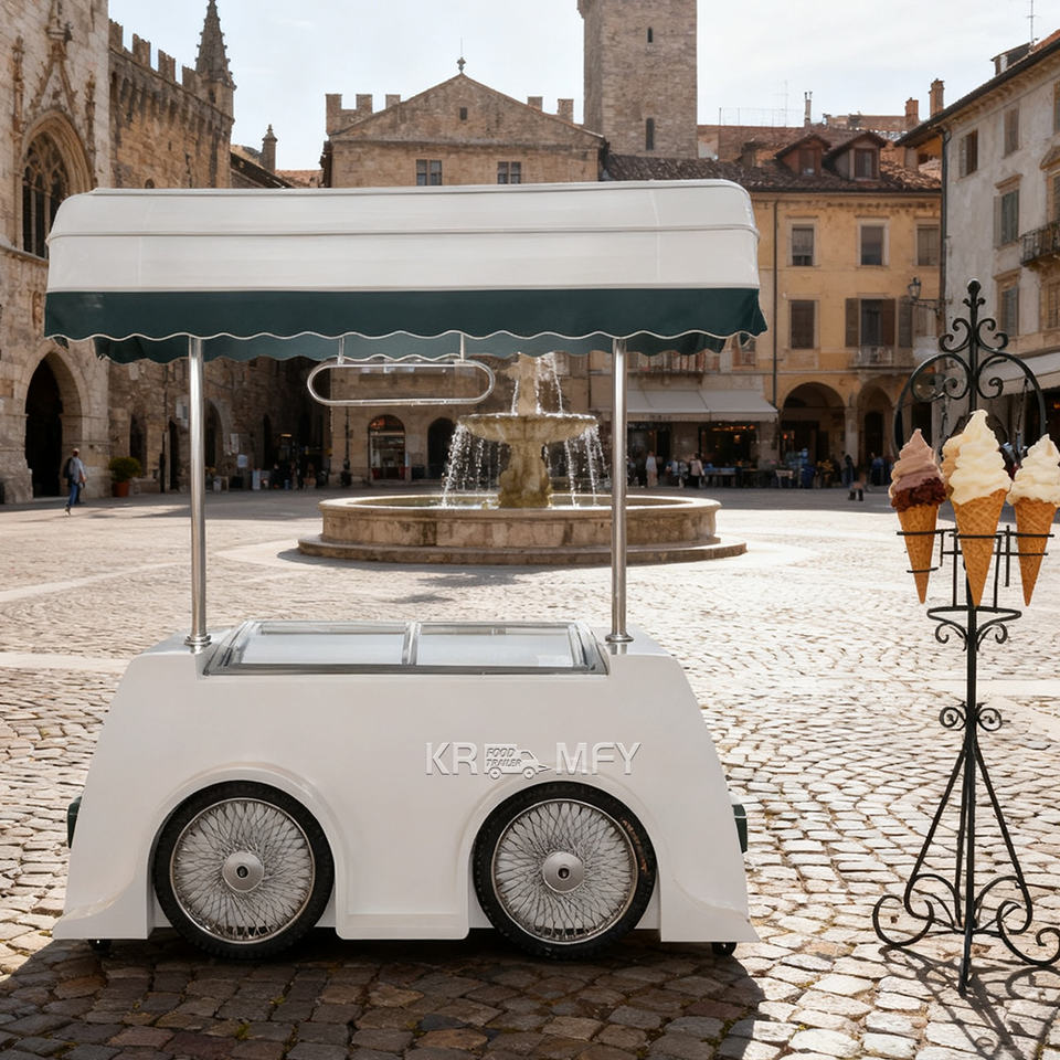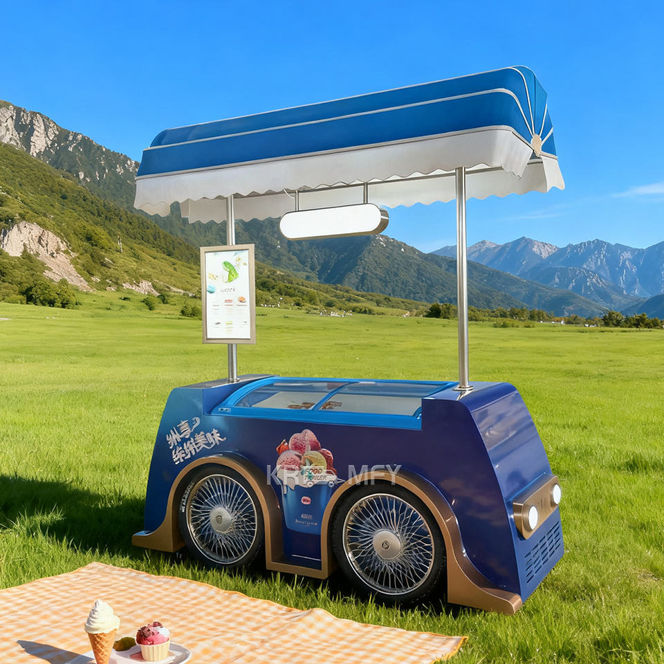Trolley Mobile With Led Lights Ice Cream Freezer Cabinet Cart Street Food Kiosk