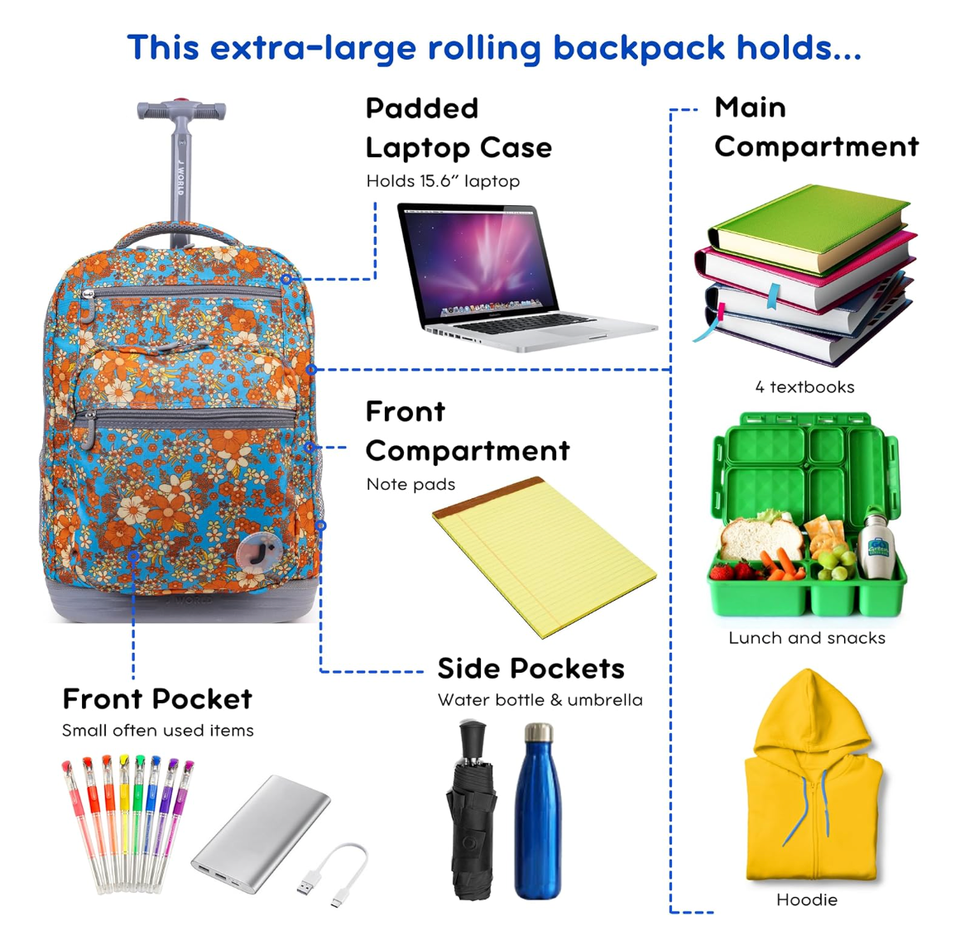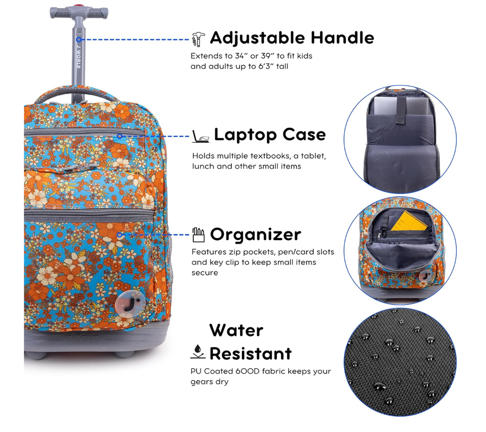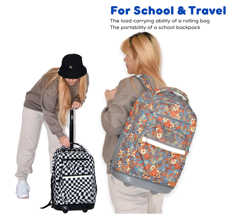 Trolley School Bag for College Laptop Rolling Backpack for Girls Boys Roller Book Bag with Wheels