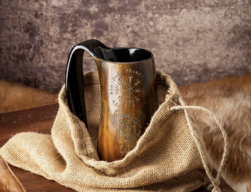 Trondebal Viking Drinking Horn Mug Natural Ox Horn Cup Insulated Tumbler Food Safe Leak Proof Drinkware for Coffee