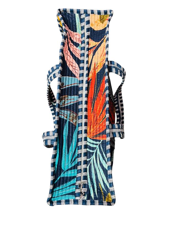Tropical Palm Printed Cotton Tote Bag Quilted Shoulder Bag with Zipper 100% Cotton