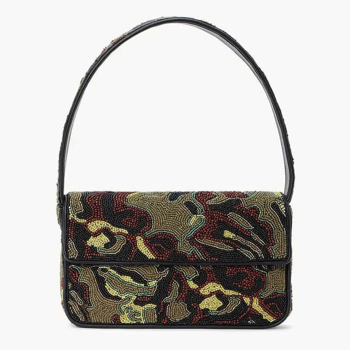 Tropical Palm Tree Abstract Geometric Embroidery Eco-Friendly Lightweight Handbag Vintage-Inspired Beaded Evening Purse Women