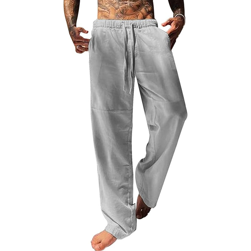 Men's Fashionable Mid Waist Casual Outwear 100% Cotton Linen Sweatpants Soft Breathable Canvas Design OEM Service Available