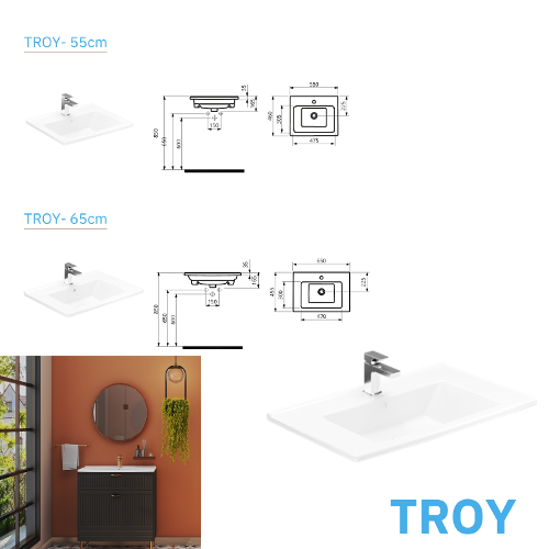 Troy 55-65 Bathroom Sink Elegant Washbasin for Classic Decors