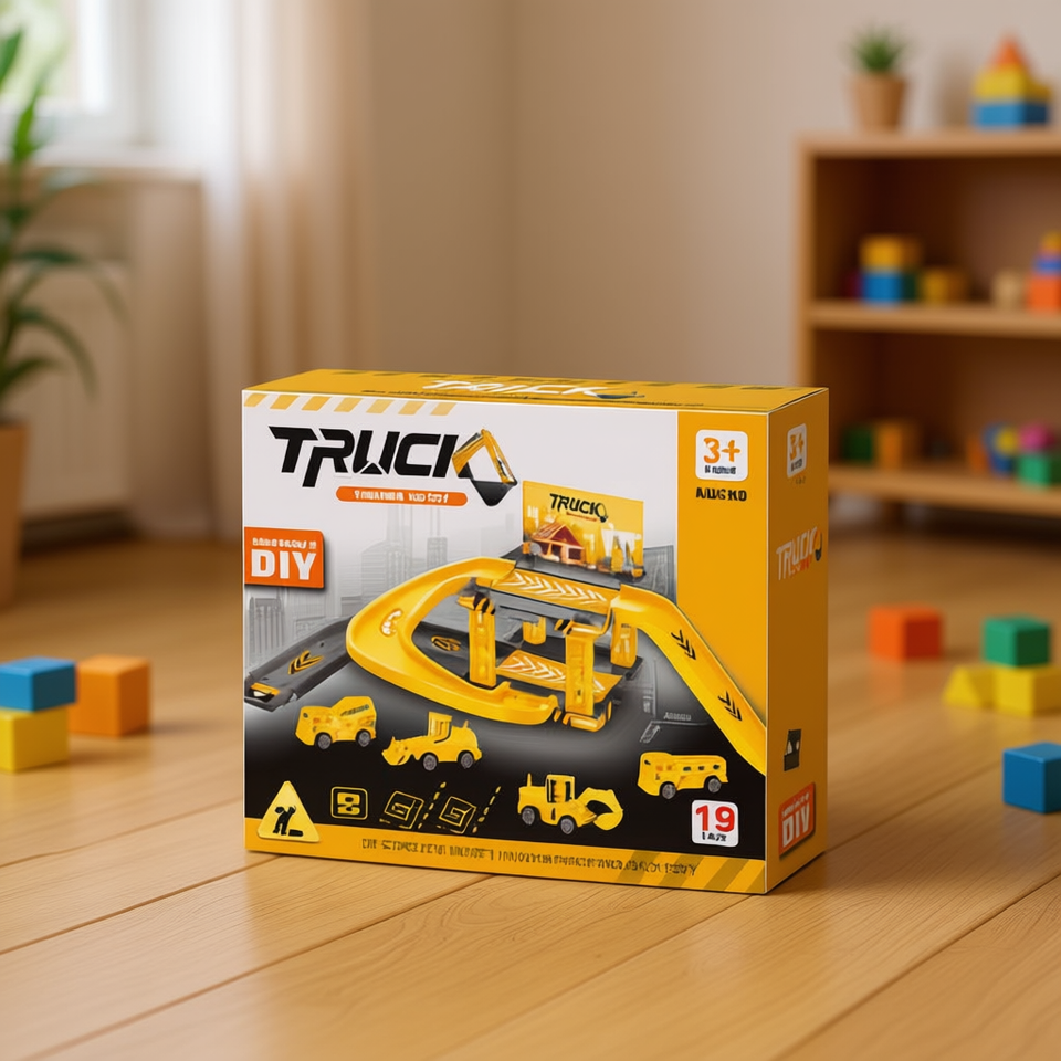 Truck DIY Slot Toy Set 19 Pcs For Kids Age 3 Plus Building Playset Plastic Construction Vehicle Track Game