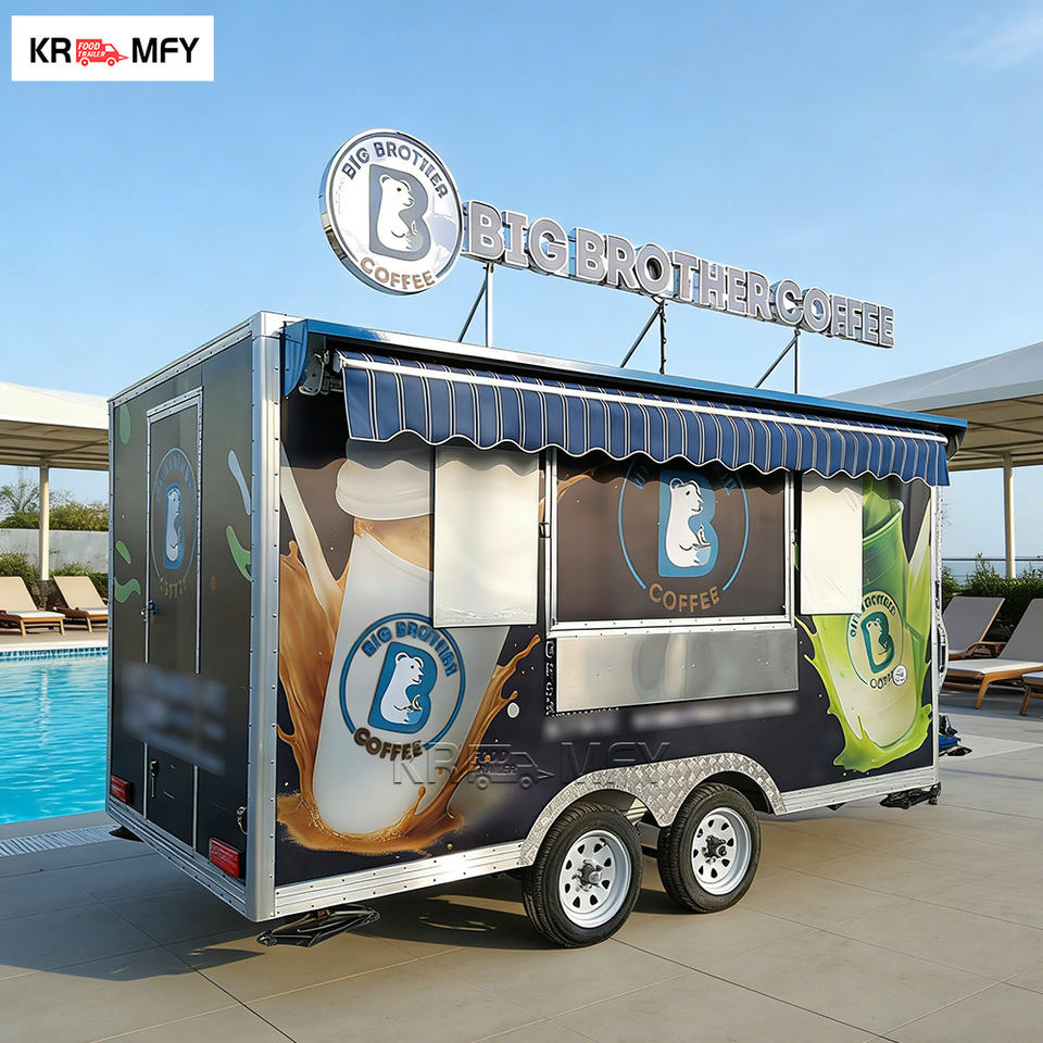 Truck Van Towable Multifunctional Food Coffee Candy Chips Snack Food Trailer 4m 4 Wheel Easy Assembly Outdoor Use