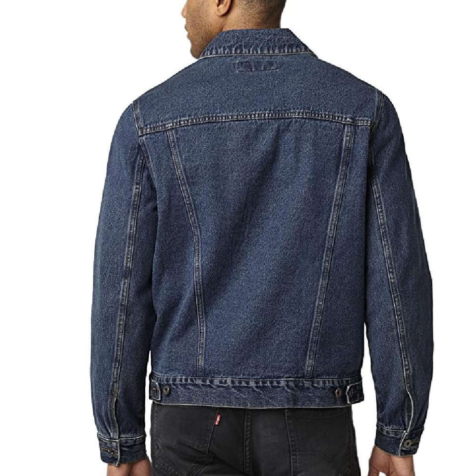 Trucker style blue men denim jacket sherpa lined thick warm winter outerwear fashion street vintage design casual