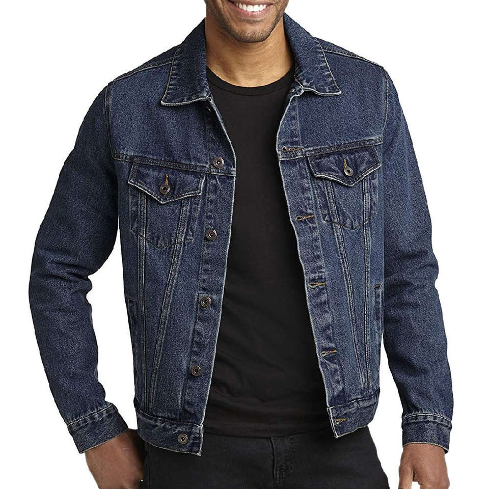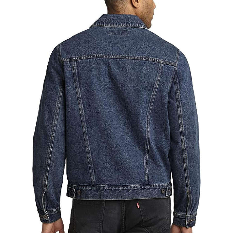 Trucker style blue men denim jacket sherpa lined thick warm winter outerwear fashion street vintage design casual