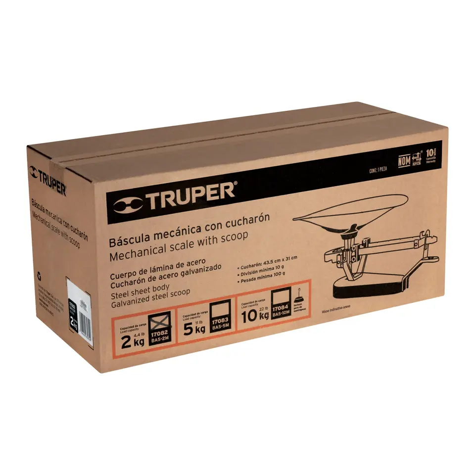 Truper 2 Kg Mechanical Kitchen Scales 1 Unit with Cupronickel Tray Mecánica Caja Con