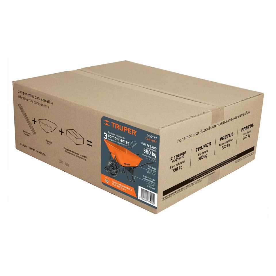 Truper CAR-81FF 8 Ft3 Puncture-Proof Wheelbarrow with Tubular Frame for Construction Building Farming and Garden Use