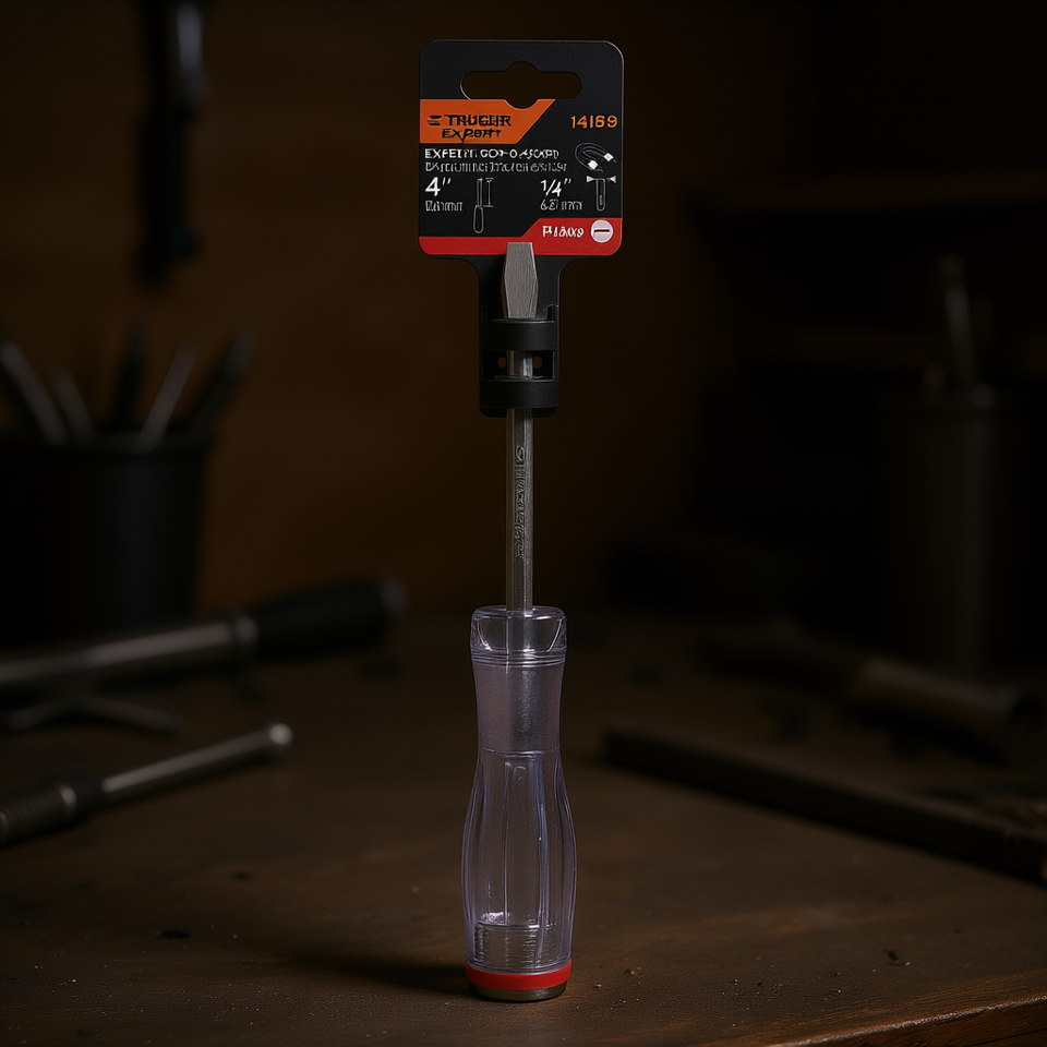 Truper Expert 1/4" X 4" Flat Head Impact Screwdriver With Interchangeable Bit And Plastic Handle For Industrial Use