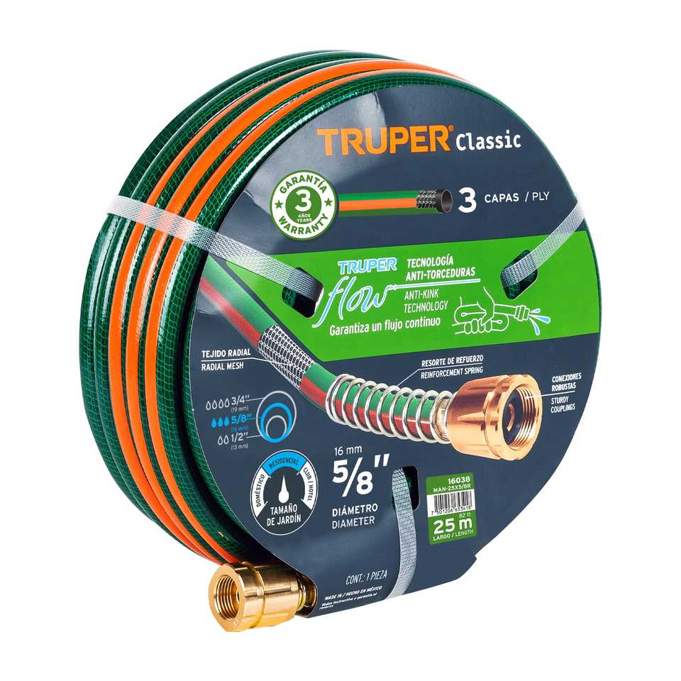 Truper MAN-25X5/8R 5/8' Reinforced 3-Layer Garden Hose Reel 200ft with Metal Connections 25m Length