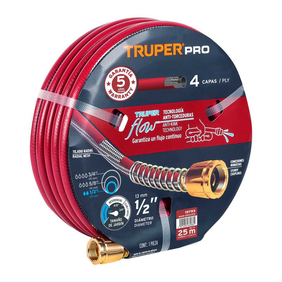 Truper Pro 25m 1/2" Reinforced Garden Hose Reel With Copper Steel Fittings PVC Material For Outdoor Watering And Irrigation Use