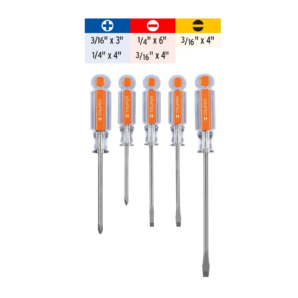 BOX 6 Set of 5 screwdrivers with acetate handles, TRUPER