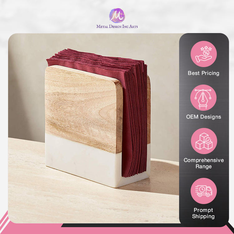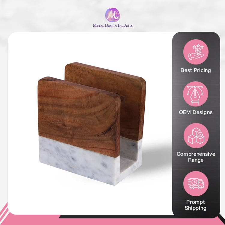 Trusted India Origin Manufacturer & Exporter Widely Selling Customized Acacia Wood and Marble Made Napkin Tissue Paper Holder