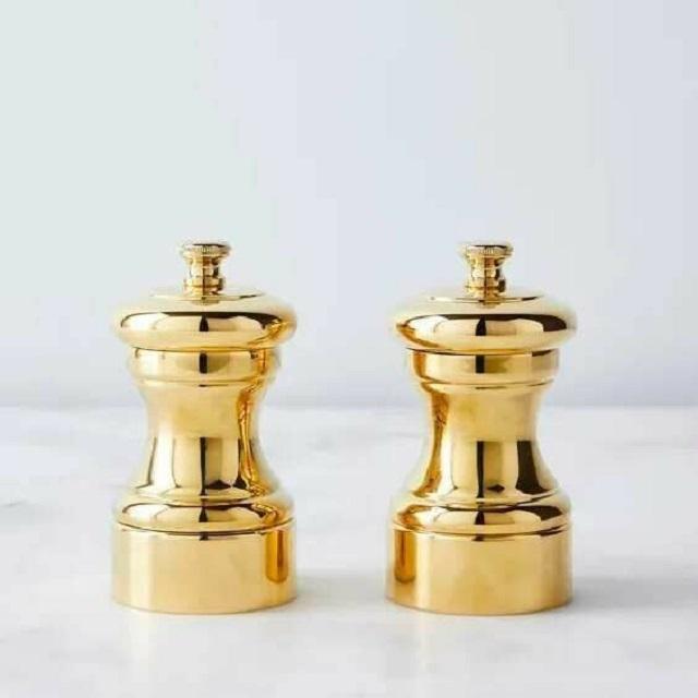Trusted Manufacturer Heritage Finish Brass Salt Pepper Set With Traditional Crafting For Classic Kitchen Accessories