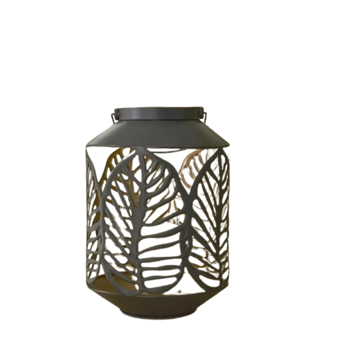 Trusted Manufacturer Metal Body Black Color Candle Lanterns With Leaf Cut Off Design Customize Sizes for Christmas