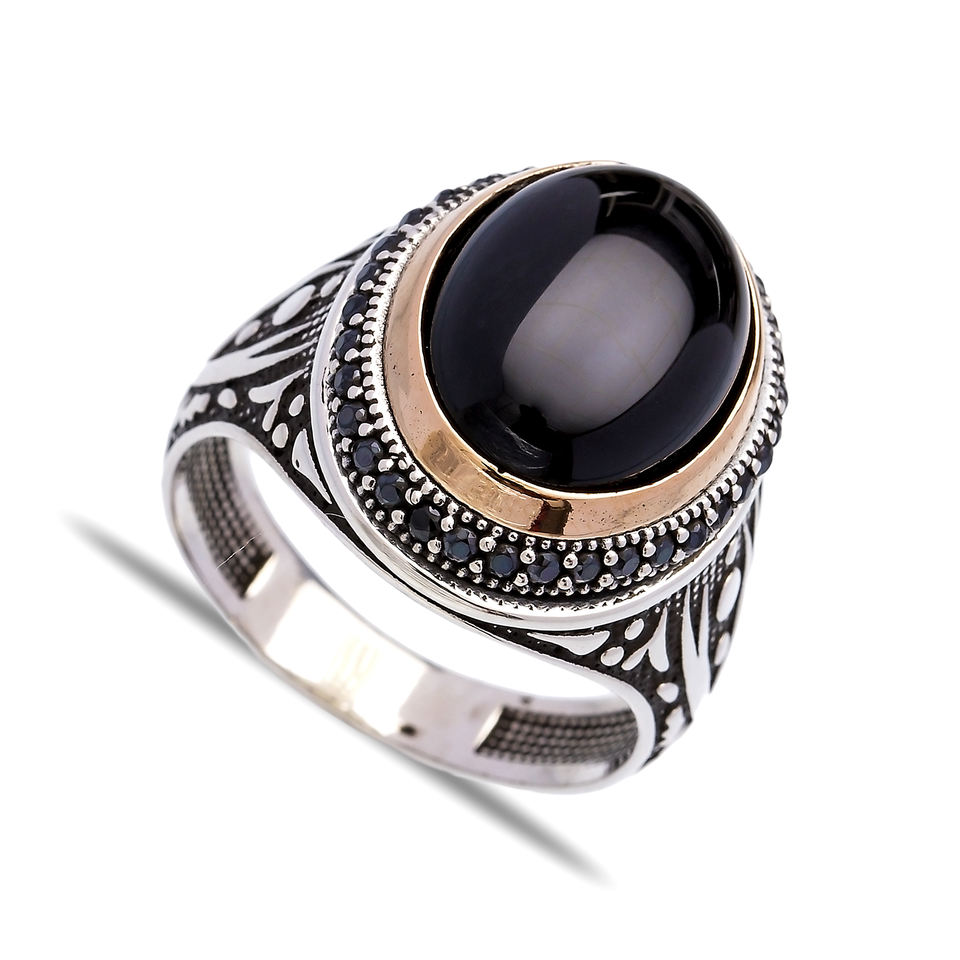 Tugra Design Ottoman Rings Onyx Stone Turkish Handmade Wholesale Authentic 925 Silver Ring