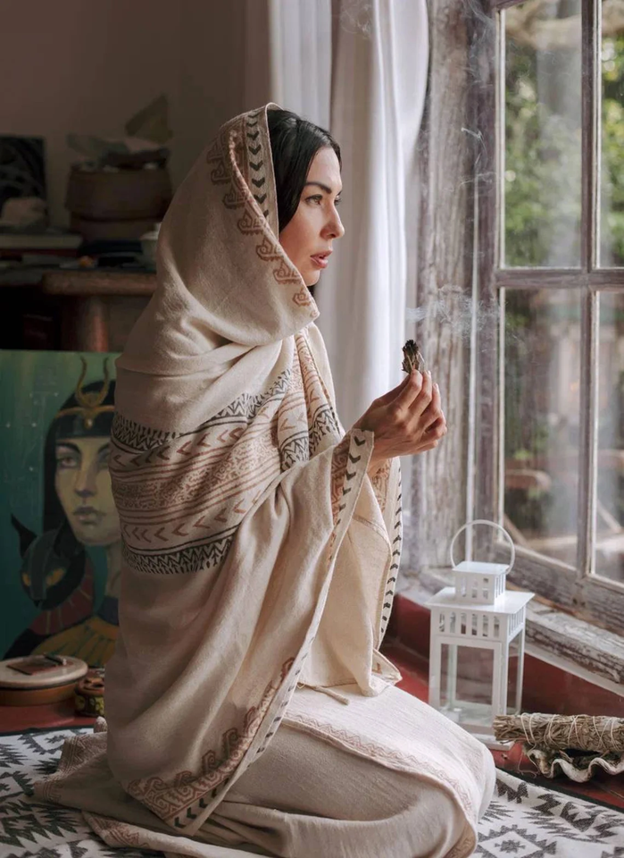 Tulasi Hand Block Printed Tribal Scarf Long Length Mink Sarong Pareo Lungi Turban Shawl