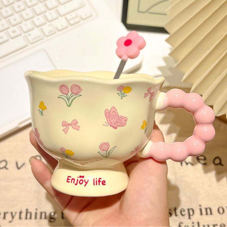 Tulip Ceramic Mug Box With Small Floral Exquisite Stylish Design Multi-Occasion Promotional Gift for Girls