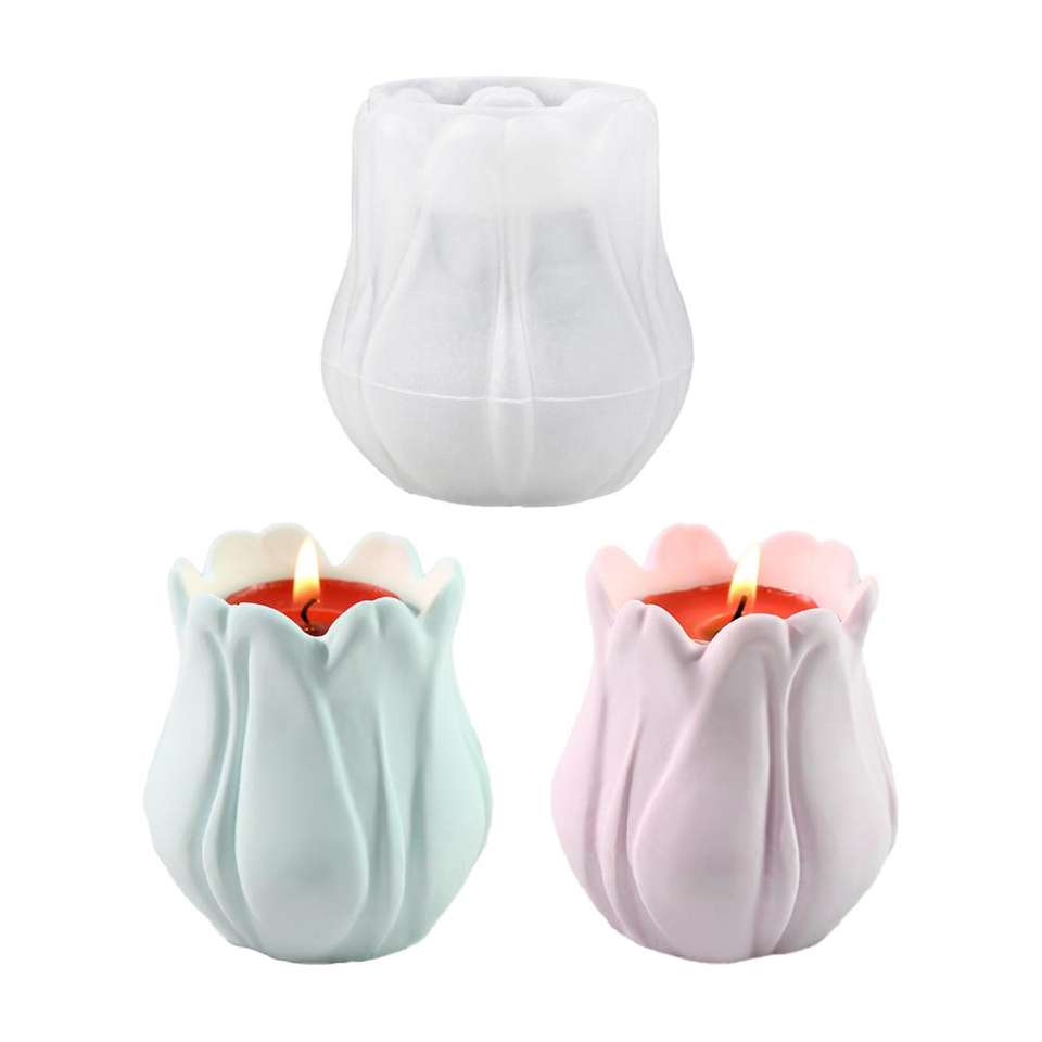 Tulip Corolla Aromatherapy Candle Cup Candlestick Base Gypsum Resin Candle Silicone Mold