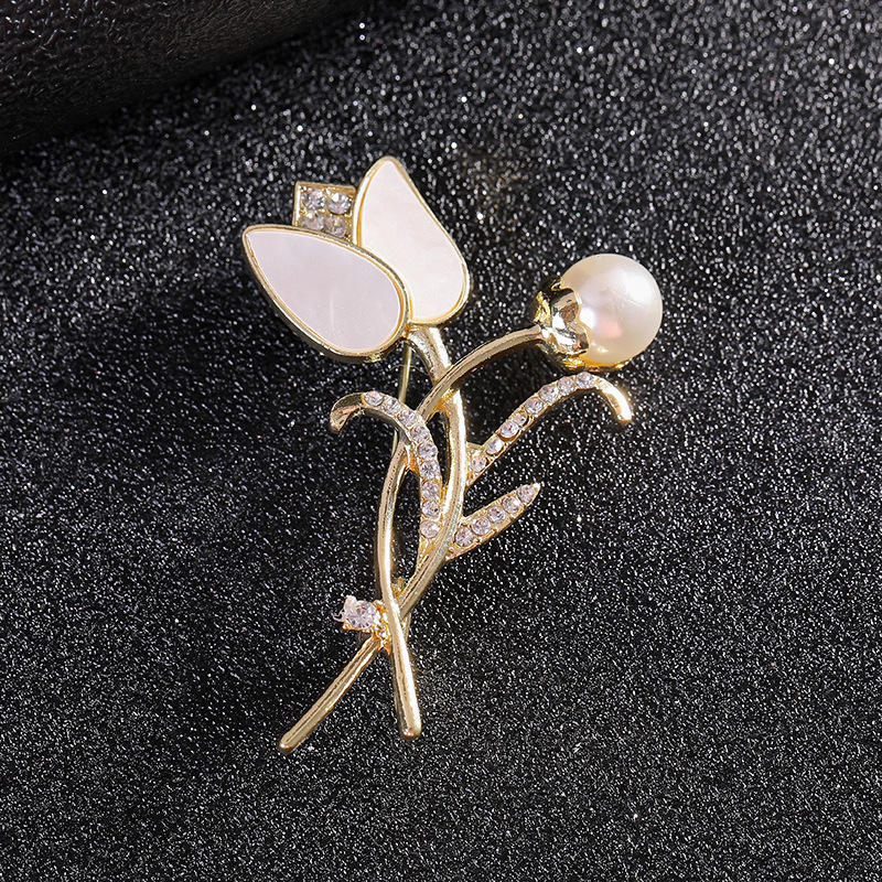 Tulip Crystal Rhinestone Alloy Gold Plated Trendy Flower Shape Brooch Women Luxury High Quality Wedding Engagement Party Gift