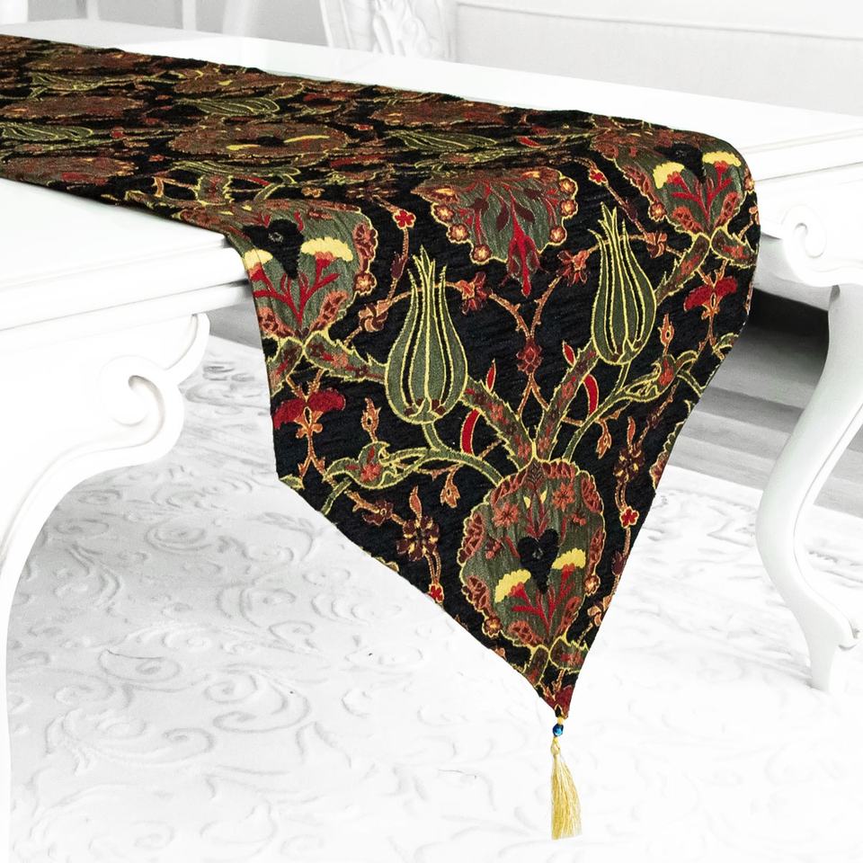 Tulip Patterned Turkish Woven Chenille Fabric Table Runner