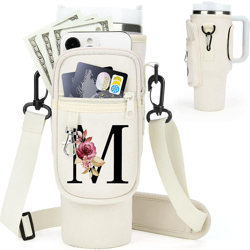 Tumbler 40 OZ Insulated Thermal Water Bottle Sleeve Cup Holder Durable Polyester Luxury Fashion Zipper Closure Can Carrier Pouch