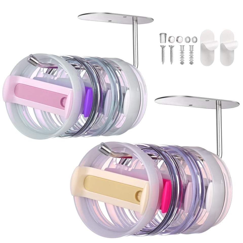 Tumbler Lid Organizer Cup Lid Hook for Kitchen Cup Lid Holders for Yeti/Stanley/Simple Modern Tumblers Self-Adhesive or Drilling