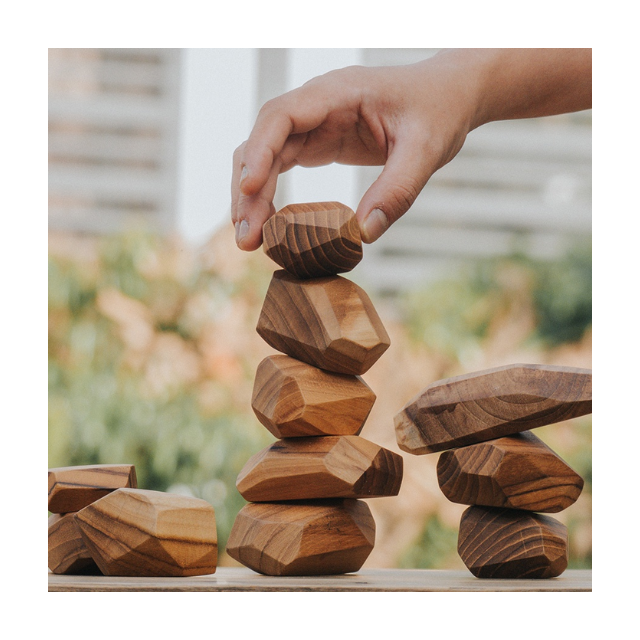 Tumi Ishi Balancing Rocks - Mixed Wood Species Balancing Blocks Natural Wood Toy Natural Color Handmade Wooden Toys - Caryln