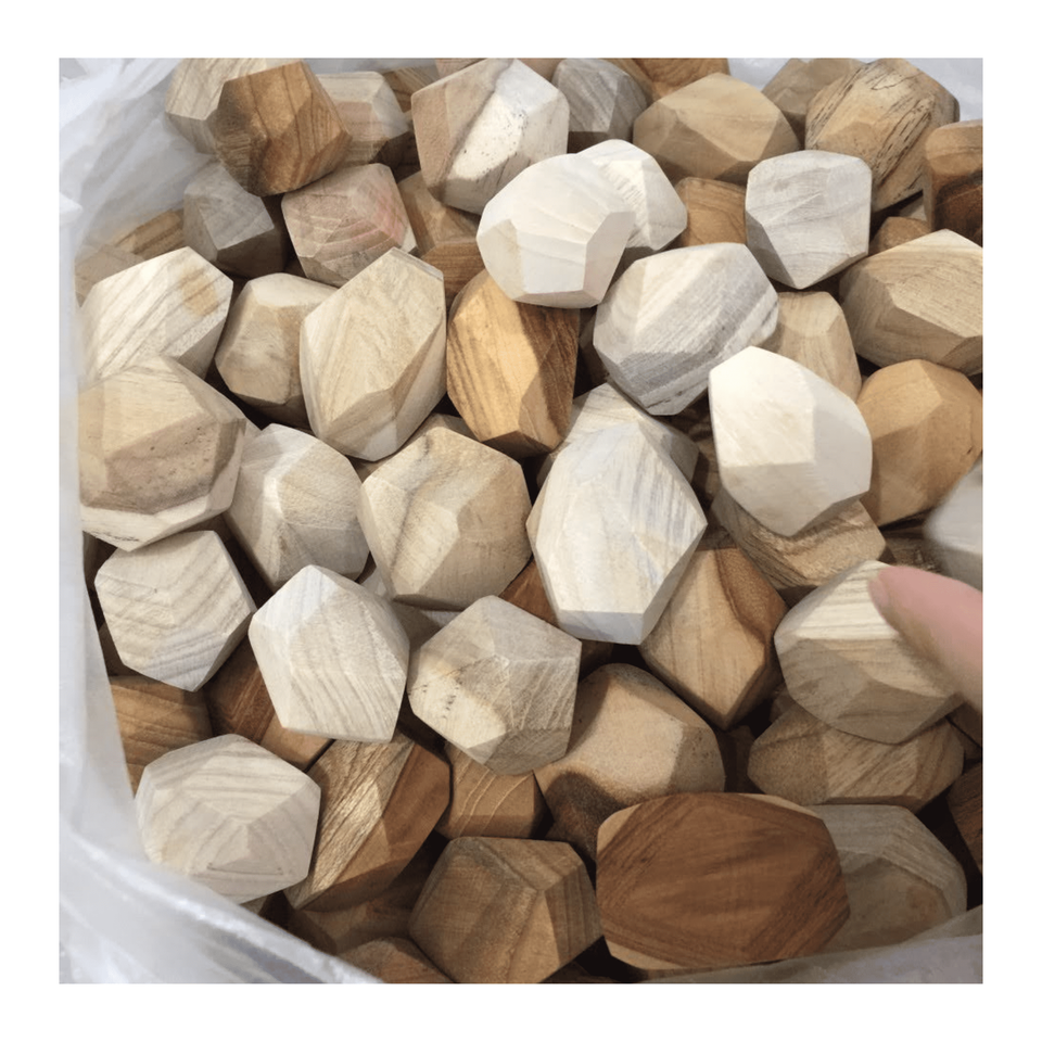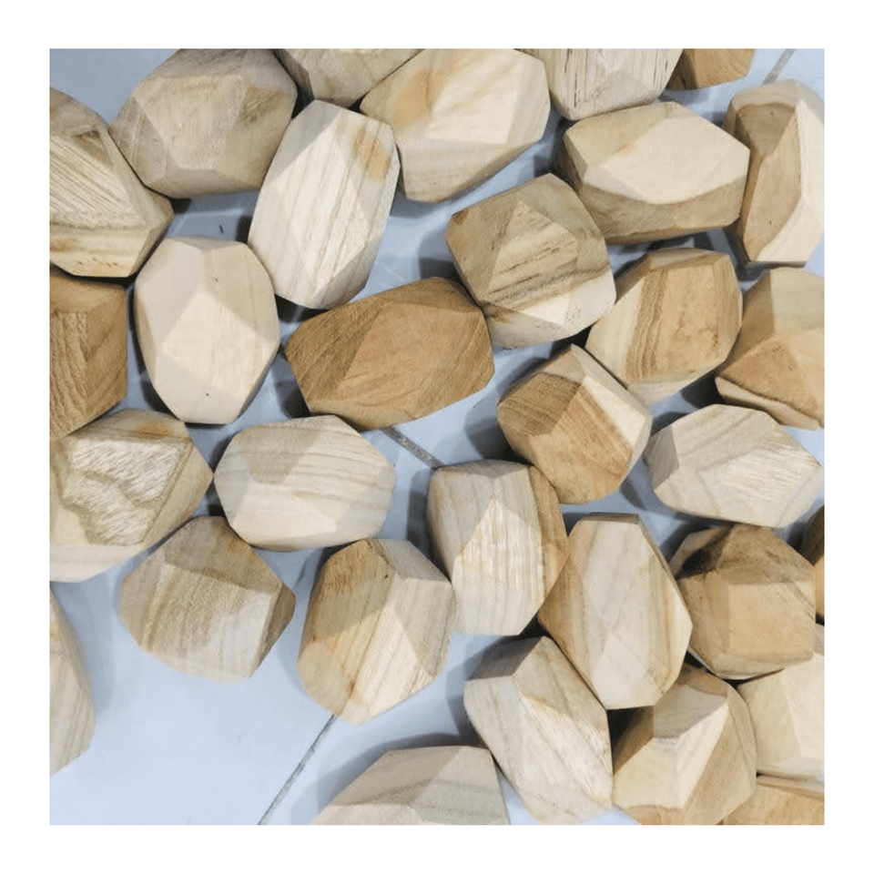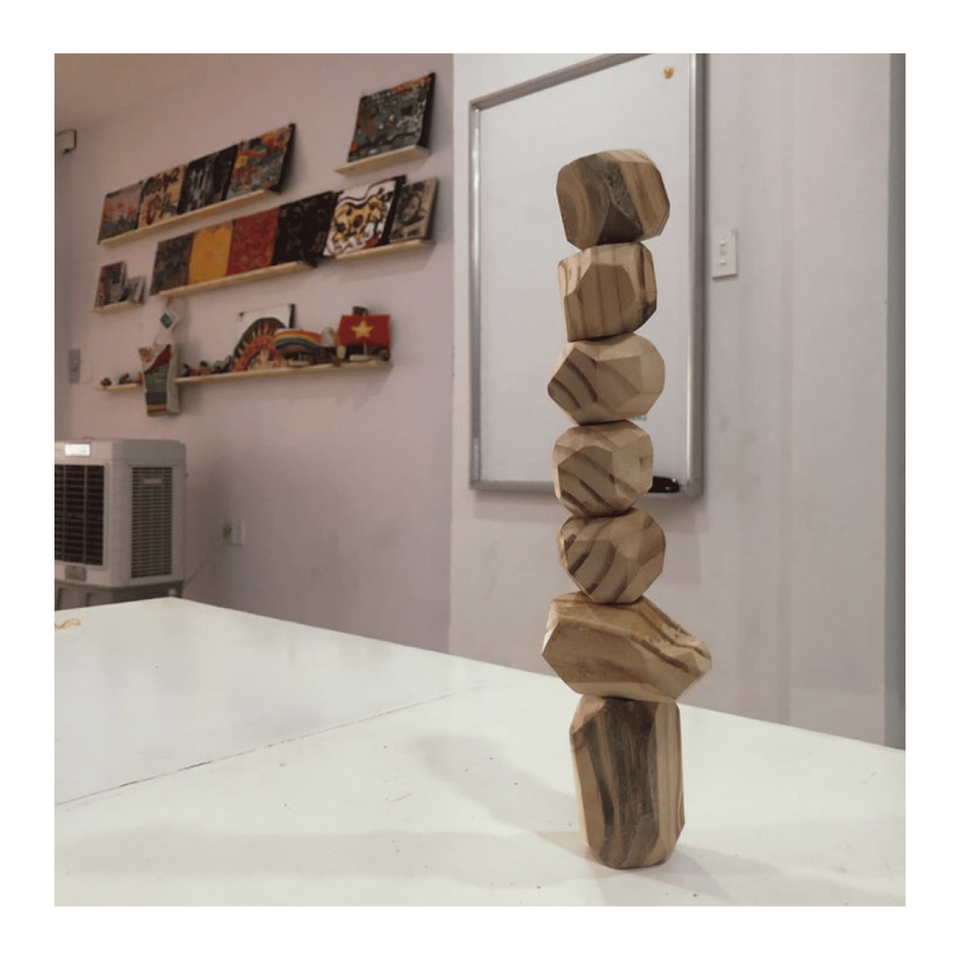 Tumi ishi Wooden Rock crafted from natural hardwood for balance stacking and creative play, skillfully handmade in Vietnam