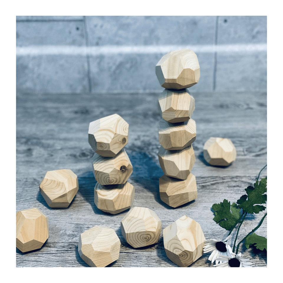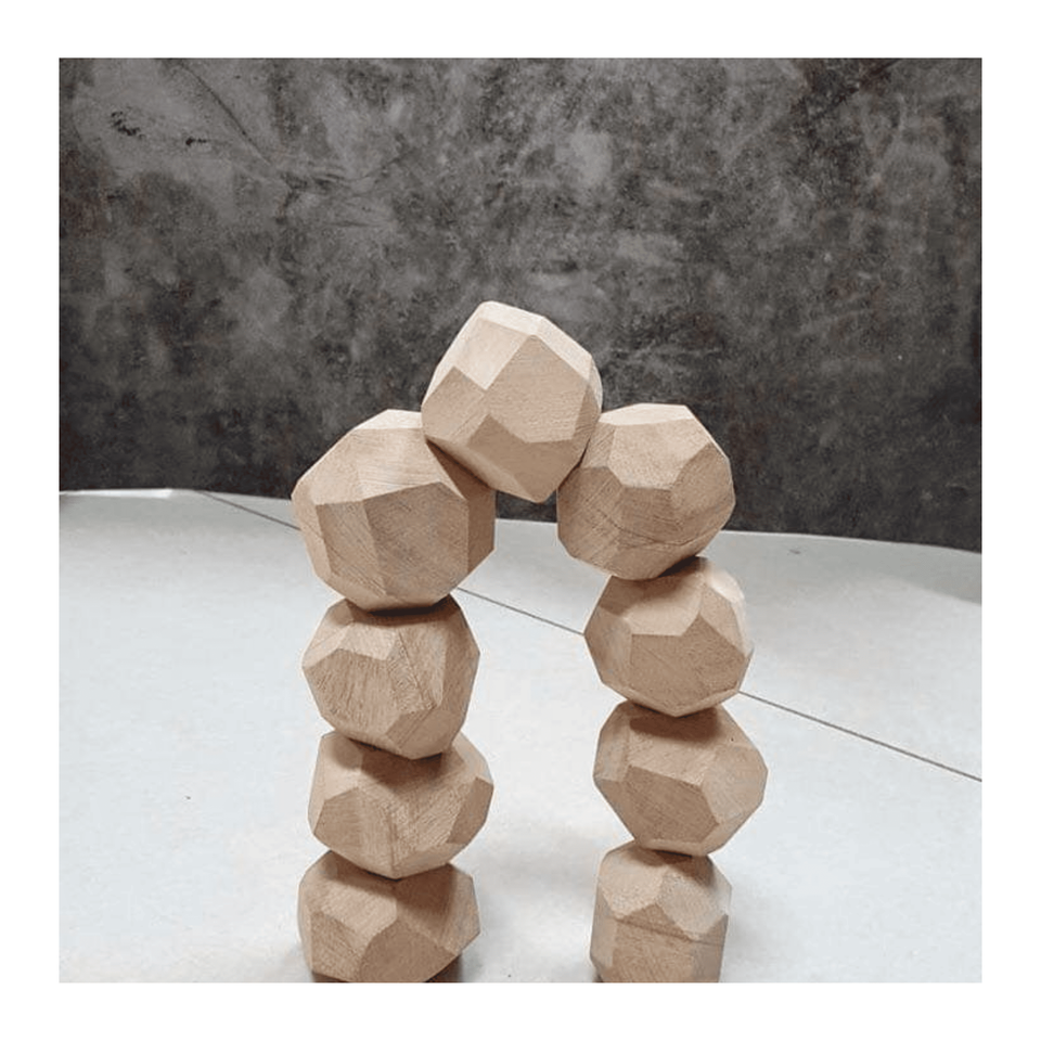 Tumi ishi Wooden Rock formed with fine natural timber for engaging stacking practice and tabletop creativity handmade in Vietnam