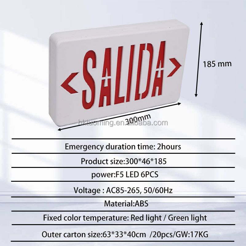 Product Name:Rechargeable Plastic Wall Mounted Led Emergency Exit Sign Light